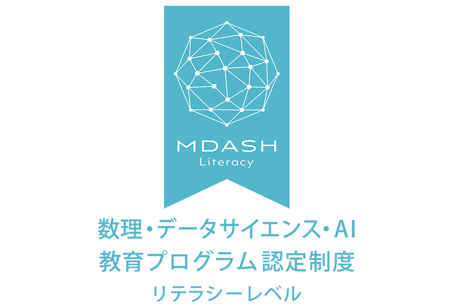 数理・データサイエンス・AI教育プログラム認定制度(リテラシーレベル)とは、学生の数理・データサイエンス・AIへの関心を高め、それらを適切に理解し活用する基礎的な能力を育成することを目的として、数理・データサイエンス・AIに関する知識および技術について体系的な教育を行うものを文部科学大臣が認定および選定して奨励している制度です。