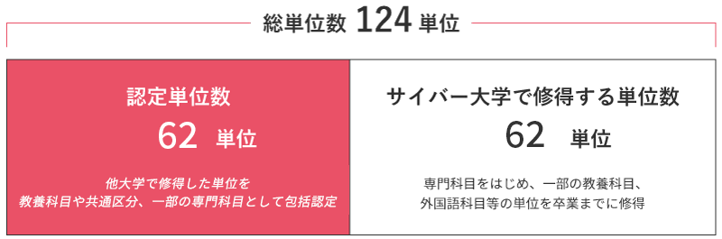 最大62単位を包括認定します。別途、個別認定、資格等による単位認定があります。