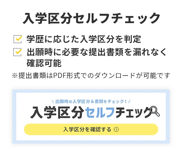 まずは「募集要項」の内容をご覧のうえ、ご自身の入学区分や出願資格等をご確認ください。