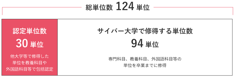 サイバー大学では、以前に他大学等で修得された単位を本学の科目を履修したものとみなし、単位を認定します。単位が認定された分は学費負担の低減につなげることができます。
