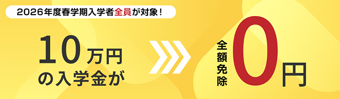本学では、2026年度のすべての入学者(正科生)を対象に、通常10万円の入学金を全額免除します。