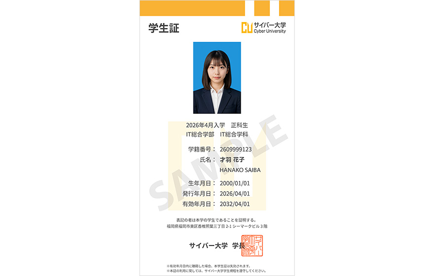 ソフトバンクグループのサイバー大学(学長:川原 洋、所在地:福岡市東区、以下「本学」)は、株式会社ネットラーニングホールディングス(代表取締役:岸田 徹、所在地:東京都新宿区)が開発した新技術『スマート学生証』を、2026年度から全学生向けに導入することを決定しました。