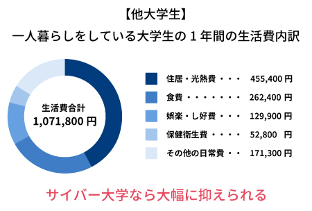 本学の授業は100%オンラインで完結するため、通学費が一切かかりません。一人暮らしの生活費や初期費用といった間接費用を抑えられるだけでなく、通学時間を家事・アルバイトや趣味の時間に充てる等、タイムパフォーマンスよく学ぶことができます。